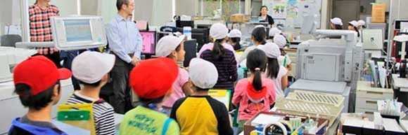 10月12日、岡山市立横井小学校2年生約30名の生徒さんが「町たんけん」(工場見学)に来られました。 工場見学に先立ち、印刷について少しでも理解してもらおうと、用意した簡単な冊子を生徒さん達に手渡し、説明をさせていただき…
