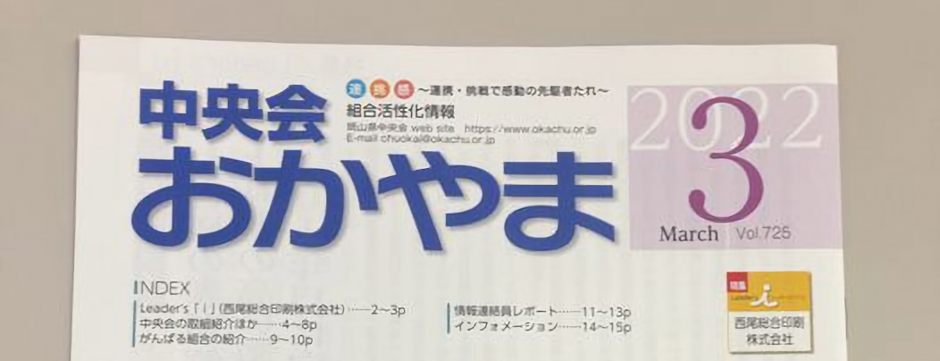 岡山県中小企業団体中央会様が発行する、「中央会おかやま」(3月号・Vol.725)の特集ページ、リーダーズ「アイ」に弊社代表取締役社長・西尾源治郎のインタビュー記事が掲載されました。