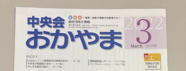 岡山県中小企業団体中央会様が発行する、「中央会おかやま」(3月号・Vol.725)の特集ページ、リーダーズ「アイ」に弊社代表取締役社長・西尾源治郎のインタビュー記事が掲載されました。 創業100周年 、ならびに101年目…