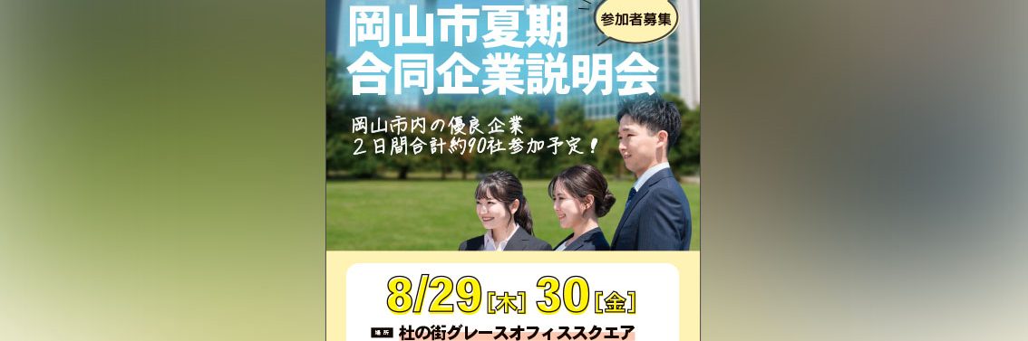 このたび、8月29日(木)に杜の街グレースオフィススクエアで開催されます、「岡山市夏期合同企業説明会」に当社面談ブースを出展いたします。一人でも多くの方に当社を知っていただき、求人への応募をいただけましたら幸いです。当日…