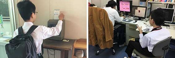 11月13日(水)からの3日間、岡山市立香和中学校の生徒さん2名が「職場体験学習」に来られました。 今回は何か記念に残る物を自分自身で作ってもらいたいと思い、「自分専用(顔写真付き)ノート」を制作してもらう事にしました。…